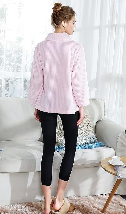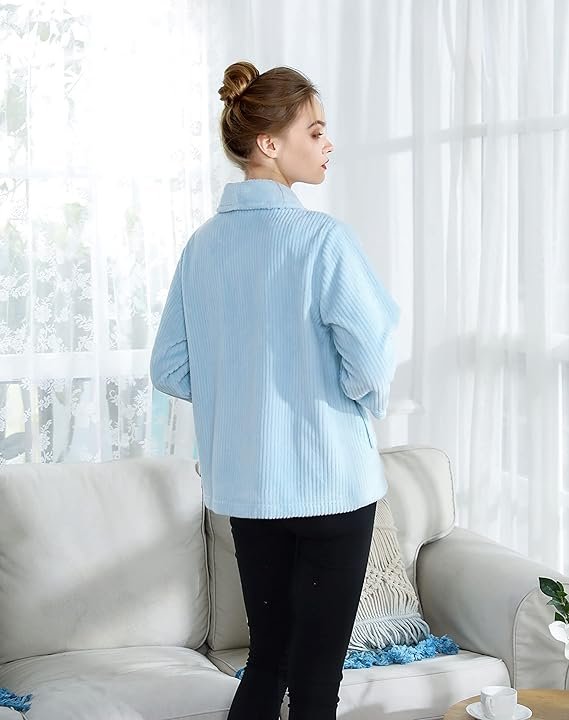 • Ultimate Coziness: Discover the warmth of our plush bed jacket, crafted from soft fleece, perfect for those cooler temperatures. Ideal for home or everyday wear, this polyester jacket is a must-have layering piece.